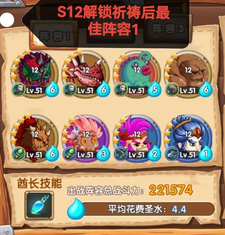 玩了几天发现,新区前期还是要上五传说才行,虽然平均费用高,但因为前期传说成长值高,升一次星加的属性多,更别说9星以后还可以一直转生了。所以在解锁了祈祷技能后,就可以上如下阵容了,如图10