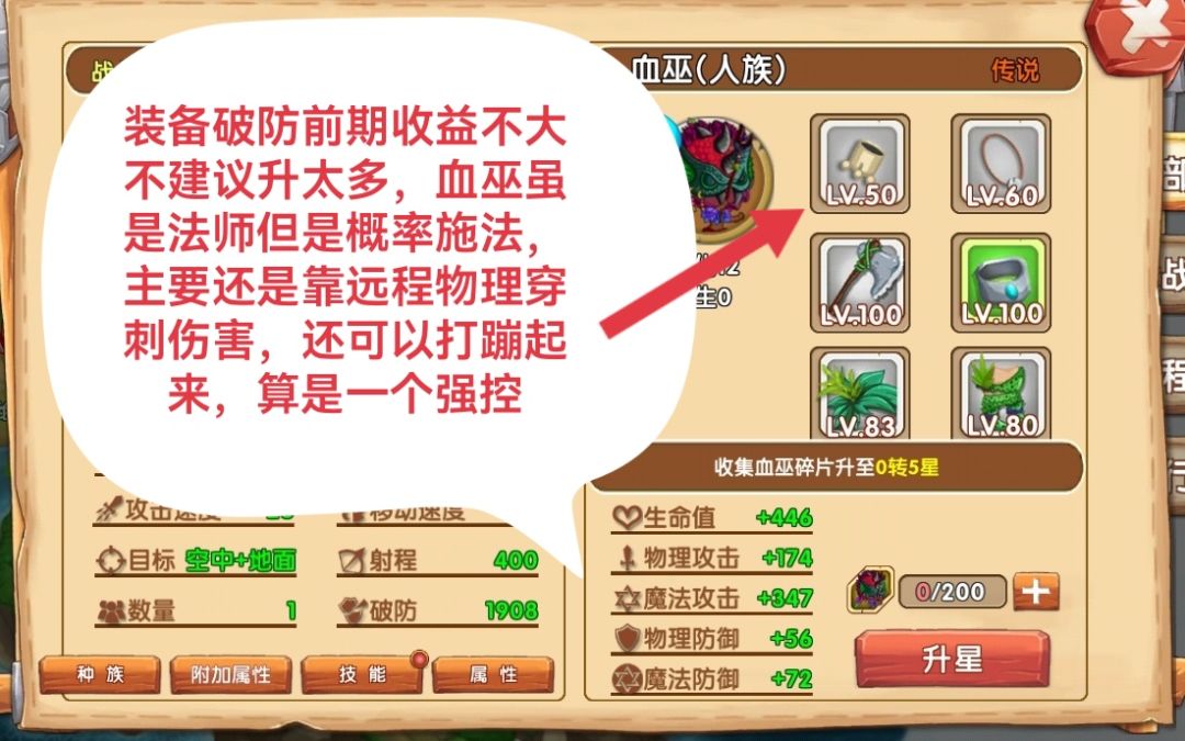 血巫:物理攻击=魔法攻击升到200级,生命值150,物抗法抗100,破防50。按照这个比例分配红币。