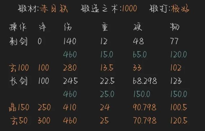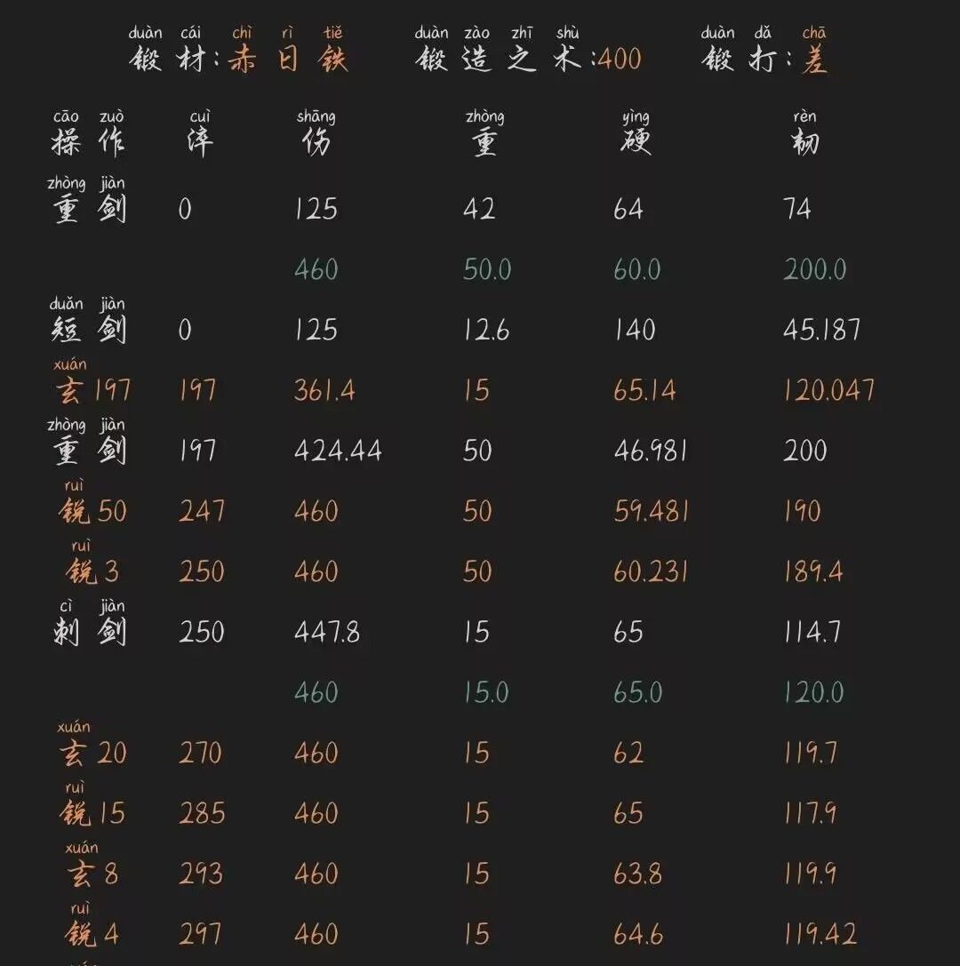- 注:赤日极差和铁精好基础属性差不多,这边只是对自己的锻打技术不够自信