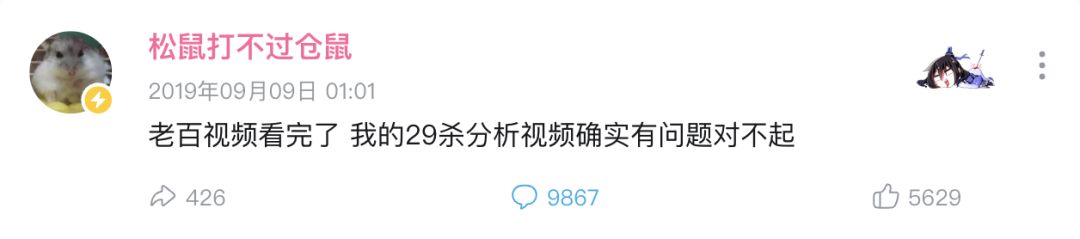 2019年9月9日,卢本伟被封杀一年后,因锤卢本伟开挂而名噪一时的UP主“松鼠打不过仓鼠”发布了一条动态,表示自己锤卢本伟的视频确实存在问题。