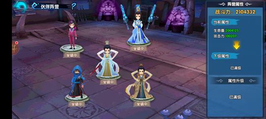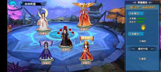 剩余其它灵宠可以选择进仙,魔,凡阵营,玩家可以选择飞升高的灵宠进入阵营,每个阵营可以加入五个灵宠,阵营一共有100级,玩家可以用基石升级,基石可以在每日活动和蛮荒护法获得,用天宫图扩孔,分别是25,50,75和100级,升级后也会加伤害和气血,还有战力。
