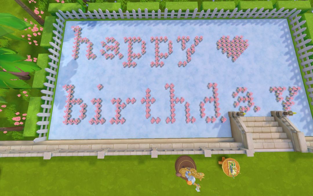 图五是用RO游戏里面的家园花园用樱花拼成的,哈哈,birthday相隔长,后面的字母被楼梯档了一些,