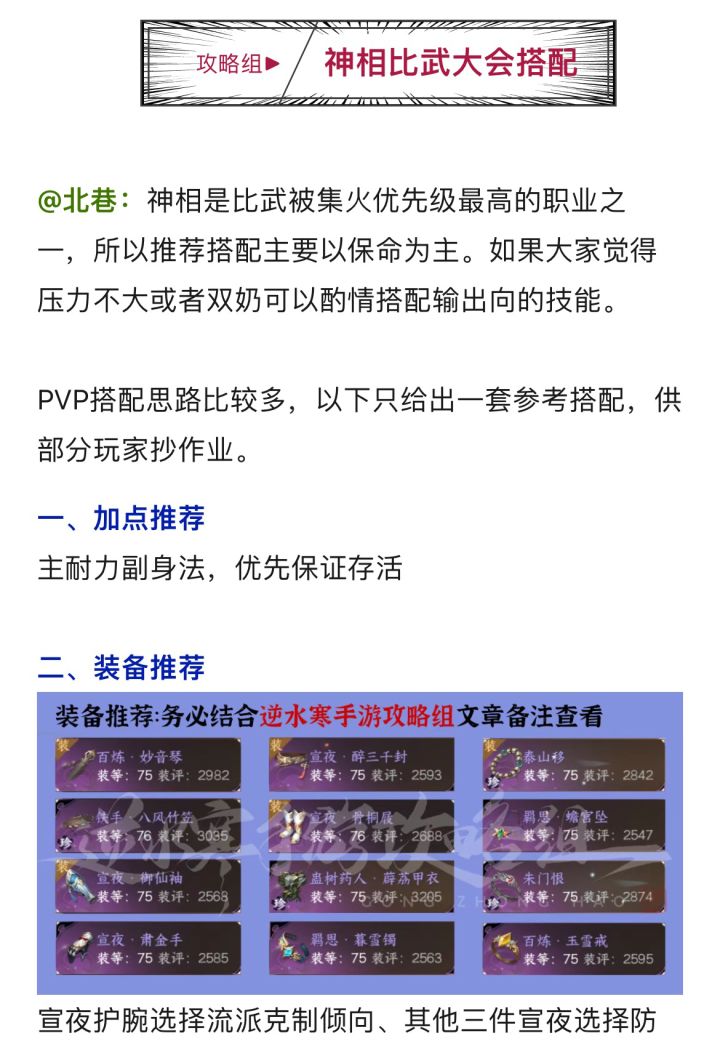 今日比武大会规则,全职业搭配推荐:含加点、技能、打造、特质、内功等!