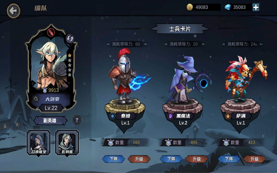 兵种:泰坦,黑魔法,远程兵(前面召唤宝宝当肉盾,后面远程兵输出)