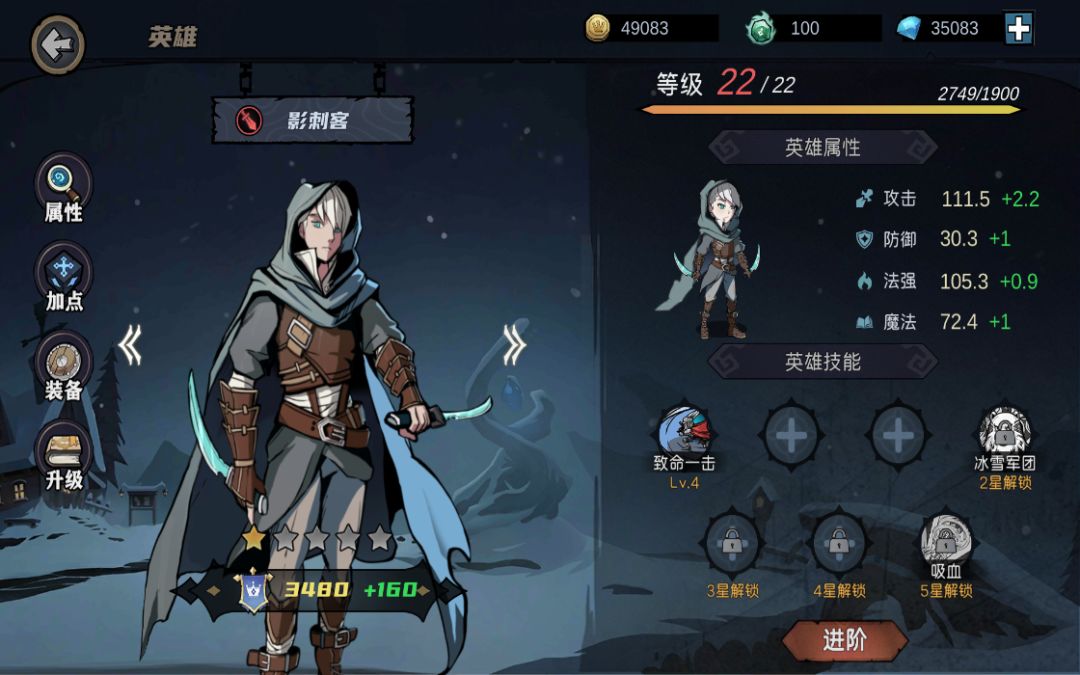 主英雄:剑豪(前期技能点不够可以先1至2次就够用了)