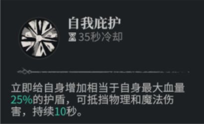 技能建议带自我庇护和法环,同样是自保为主。瞬发的护盾在战斗中能做到反杀的效果。