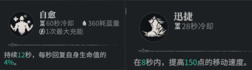 主动技用自愈搭配迅捷,先生存再追求击杀。