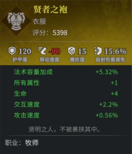 牧师是能打能奶能抗职业,所以全属性加成对牧师的增益较高,推荐装备
