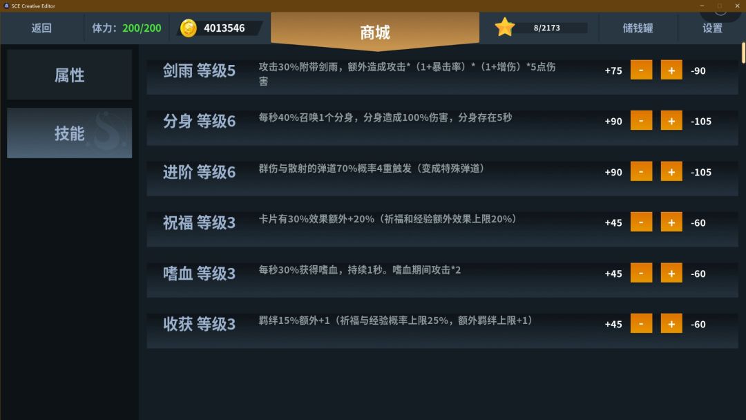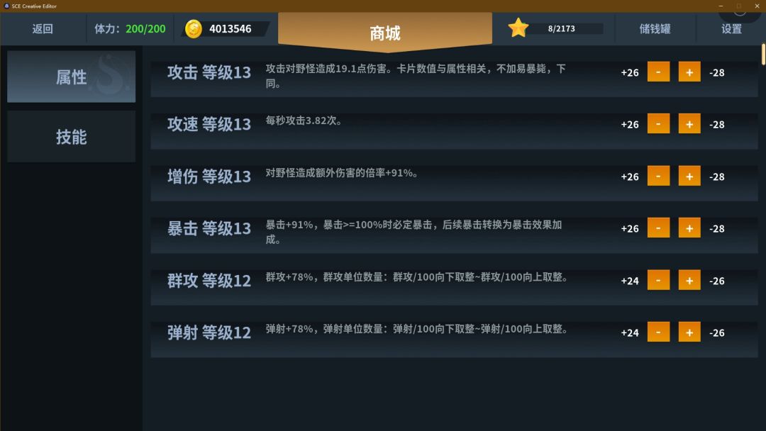 刚才打了一局125层,运气比较好,剩余5分钟左右给了1张9级爆击和8级群攻(貌似),最后结束时战力达到了72E