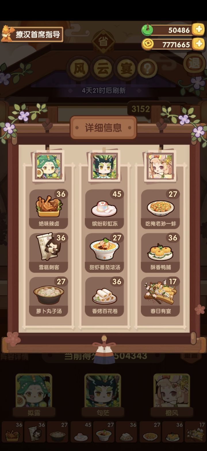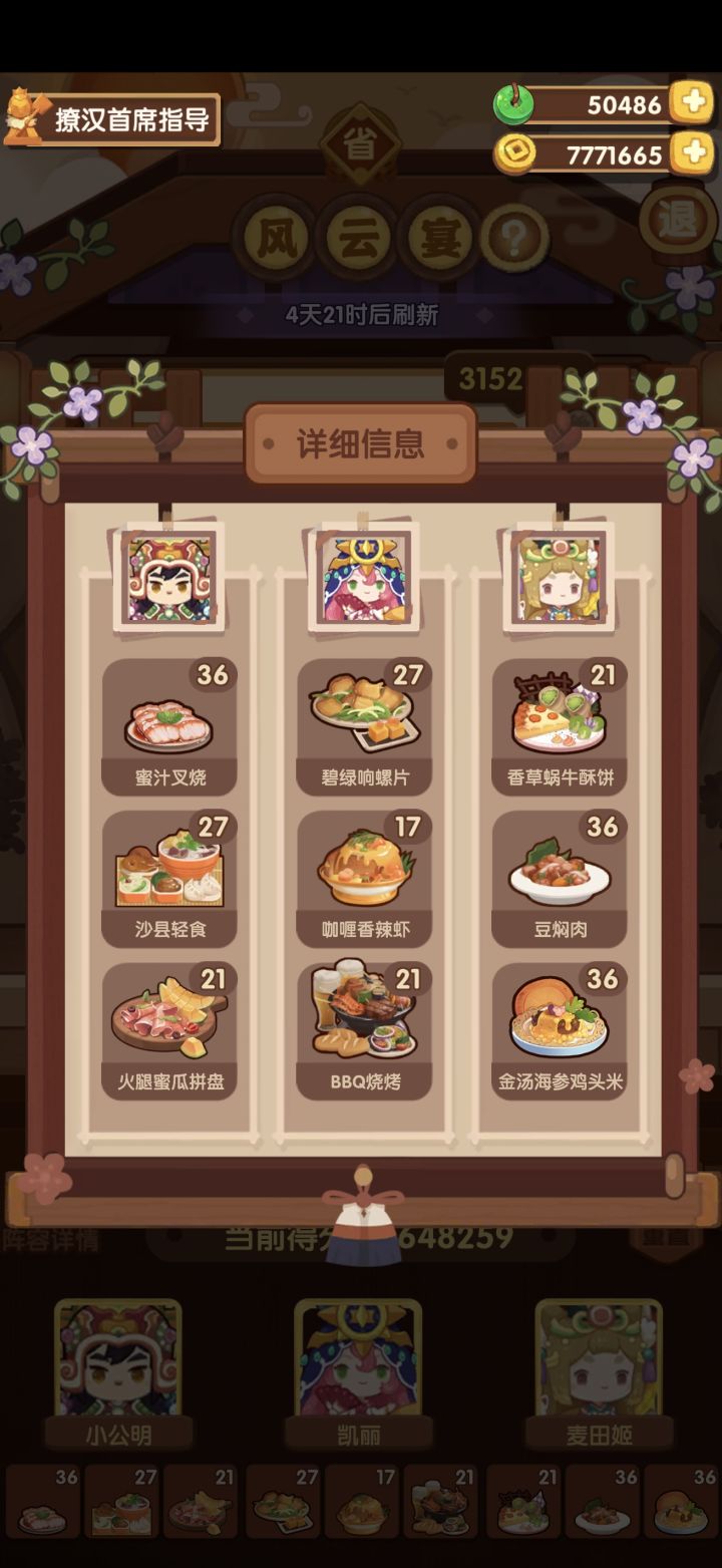 小公明有躺平鸭杯,其他应该没有啥厨具,部分老菜谱熟练满了,今日几个池子里的都没有刷完熟练,后厨菜有春日有宴、BBQ和沙县。