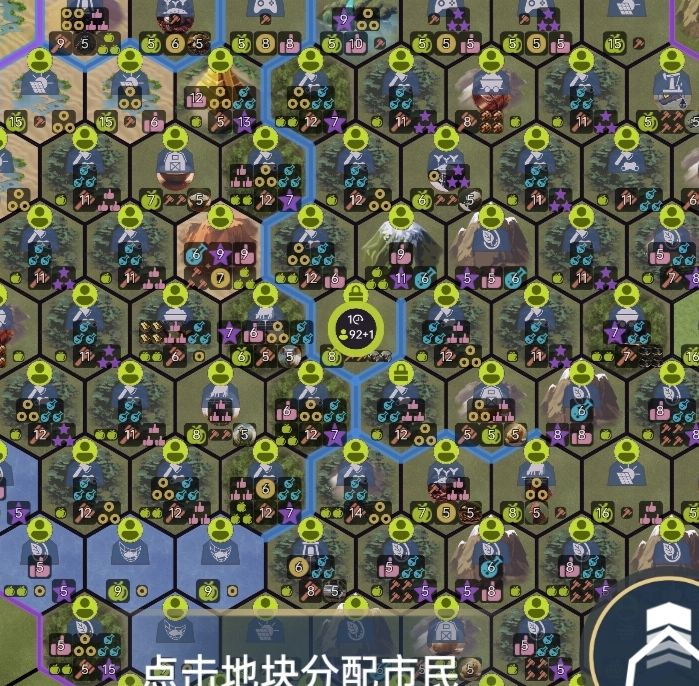 ps:有人口才能在地块工作,只提升地块产能、金钱,无人口工作也白搭,城市满地块是90,人口也不用追求太极限。