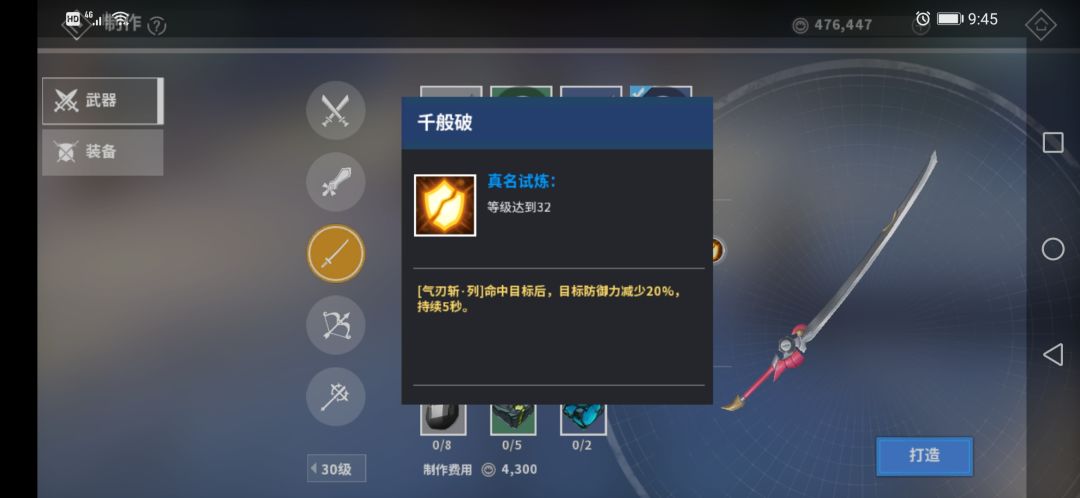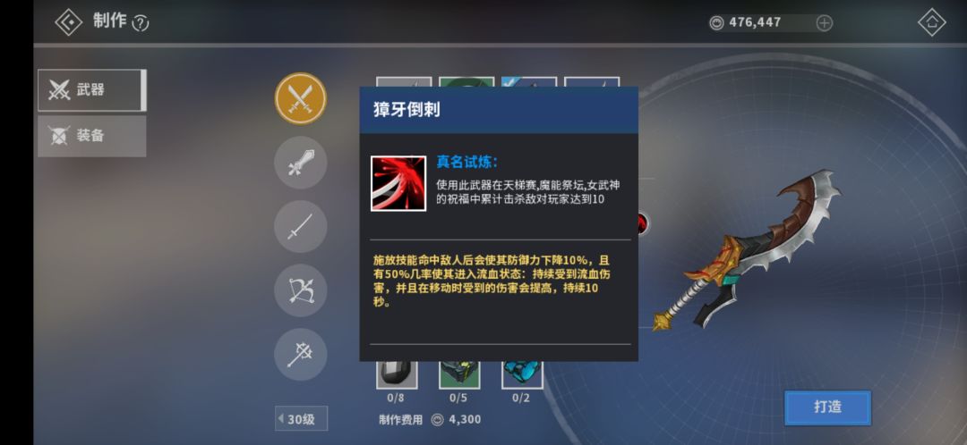 30级獐牙弯刀:任意技能命中触发10%破防