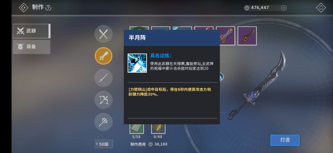 50级大漠弯刀:【力劈桃山】命中触发30%破甲