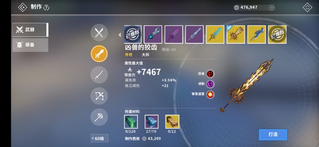 进阶泛用-破防武器:60级大剑--凶兽的狡齿、60级重炮--鎏金英灵重炮(至少选其一)