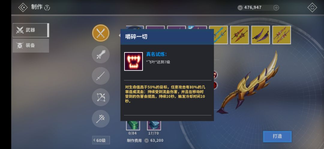 60级嚼碎者的终结:【飞叶】命中流血状态的目标触发20%破甲