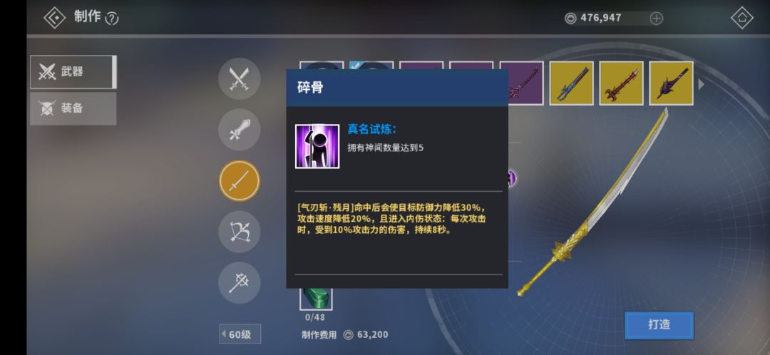60级碎骨太刀:【气刃斩·残月】命中触发30%破甲