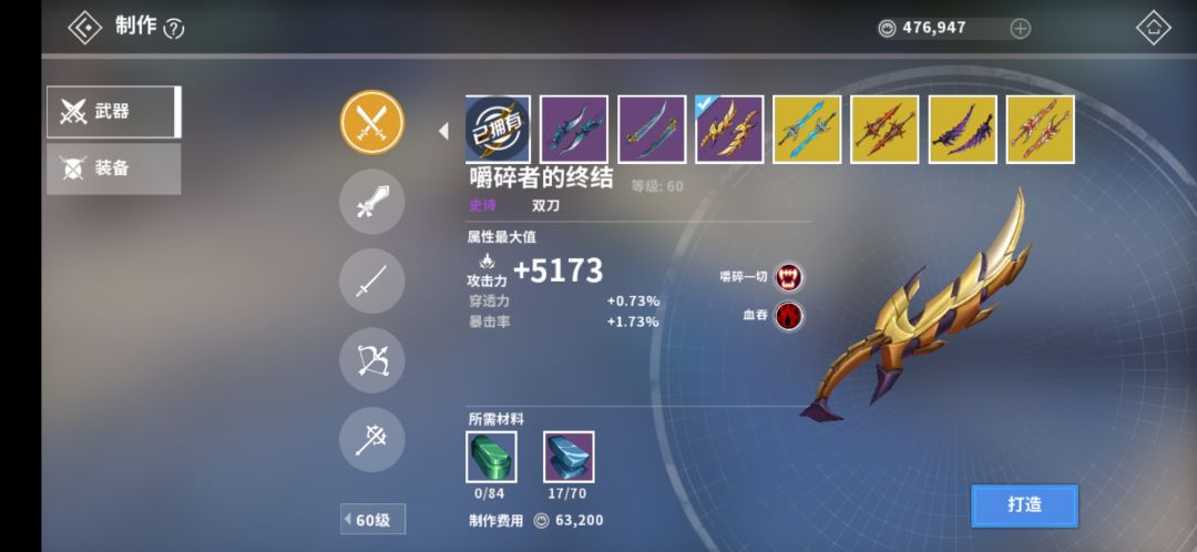 备选武器:60级双刀--深渊的鬼瞳(幅度不够,但如果时切武器上破甲还是不错的)