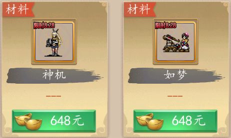 在七夕活动期间,再也不愁武将升级慢,碎片难刷的问题了---限购礼包内新增6元【武将升级限购礼包】、30元【碎片特惠礼包】