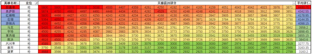 只有小胖和暴雨偏弱,都是输出环境太差了。以往一直超模的亨特现在也只有普通强度了,毕竟别的枪位一直加强,就亨特被削弱。枪位版本!