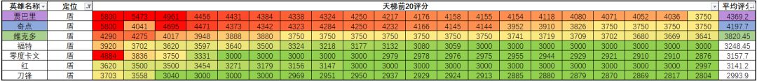 一、所有英雄排行