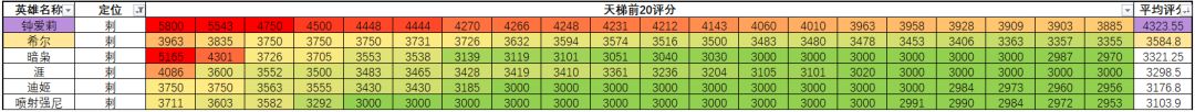所有英雄排行