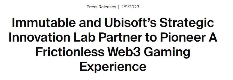 ·Immutable是一件专门从事Web3区块链事业的科技公司,尤其是NFT艺术方面,而育碧作为世界顶级游戏公司,在2022年4月时,育碧的CEO就表示正在讨论对NFT的领域介入课题。