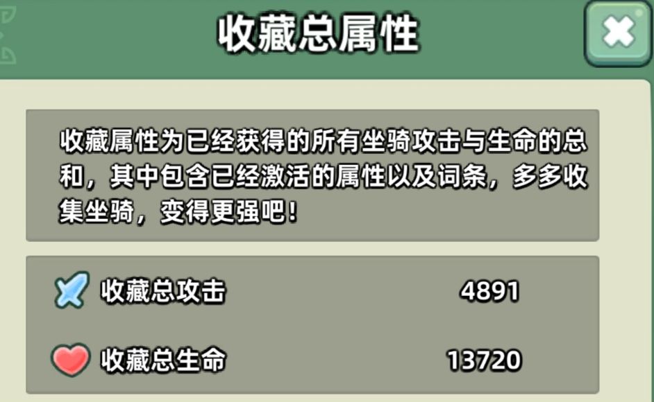 4 、坐骑模块 :坐骑这玩意是白字攻击的重要来源,单一坐骑带来的攻击提升很小,但数量众多慢慢收集也能有非常可观的攻击提升。目前上阵坐骑公认最好的是小飞象,原因增加拾取范围加攻击,平民也能抽的到,骑上它闯关非常舒心。