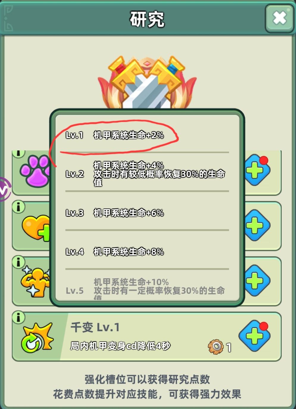 我个人推测,机甲初始血量只继承人物面板的1%,为什么这么推测呢?原因是机甲的被动研究树,第一级血量增加到2%,那么说明机甲初始机甲血量默认小于2%,大概推测是1%所以才会那么脆,那这一切就解释的通了。