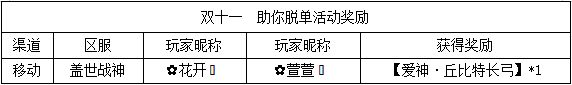 《世界OL》双十一活动获奖名单