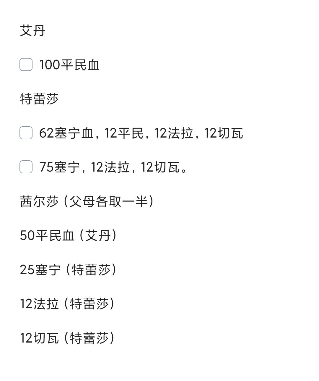 我们可以推测特蕾莎拥有大量塞宁血统,少部分法拉血统,其余待定。