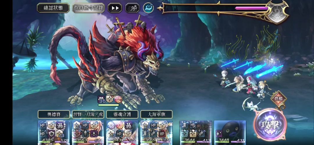 - +我方全体水属性攻击力35%UP(3回合,最多50%)