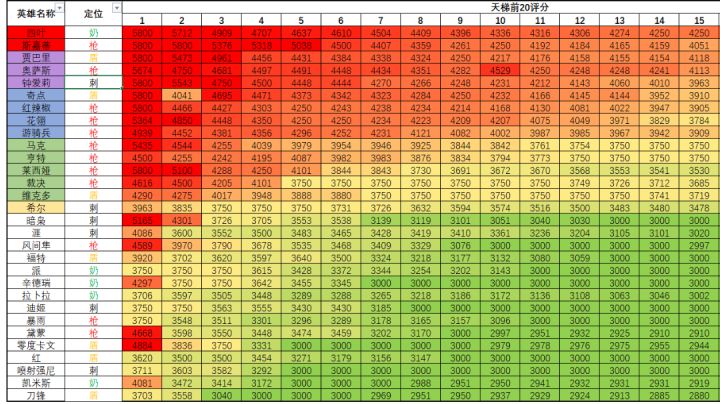 一、所有英雄排行取天梯前20的评分,按平均分排行,分梯队。截止时间11月12日23时T0(超模):四叶、手枪T0.5(高强度):电胖、大狙、爱莉T0.75(主流偏强):奇点、黑妹、花翎、格罗T1(主流):马克、亨特、莱西娅、裁决、维克多T1.5(主流守门员):希尔T2(弱势):其余Ps:需要注意的是莱西娅和黛蒙,拥有的人比较少,尤其是黛蒙,大多数人都刚解锁。个人认为她们的强度都可以