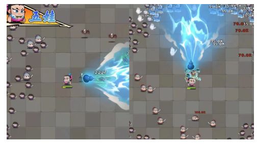 六娃1.六娃隐身每隔一段时间,使用隐身,碰撞缩小移速大幅度提升,也就是说在隐身时,我们的移动速度得到提升,而体积则会缩小,更不容易被敌人攻击到, 并释放分身攻击敌人!