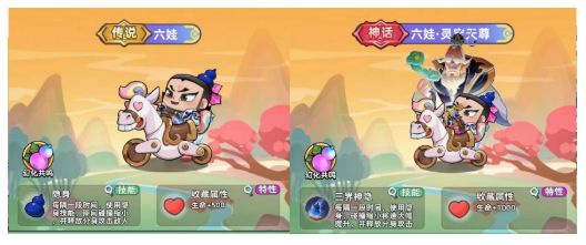 1.神话七娃拥有宝葫芦可以召唤出两个宝葫芦在头顶和怪物脚下,吸收并秒杀大量怪物,重点在于拥有秒杀效果,神话七娃的收藏属性为召唤属性,可以提高我们的召唤伤害!
