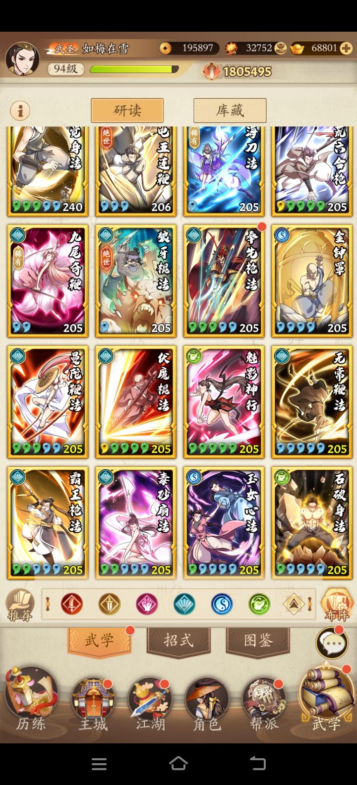 玩了一个多月(丐帮进度),前面一个月都是硬生生玩阳奇裸体套(熟悉游戏),一直被调和剑练剑,直到乌龟出来知道阳奇是死路(几张裸体卡个个都快黄了),后转调和奇。