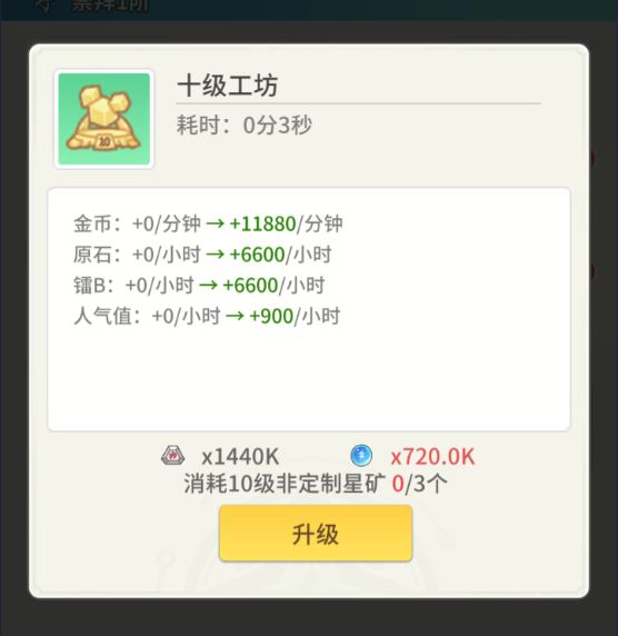 - 科技升级这里跟着主线任务走,有多余的优先点原石收集器和镭b收集器,因6级矿以上可以合成工坊且只需消耗三个矿就能获得12个矿的产出,能合成工坊就合成工坊。雷达一级基本上就够用(但前期找矿很难,可适当多点一两级)。