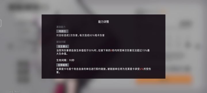 被动天赋:两个被动天赋都为生存做贡献,80级克莱提卡血量大约4000,4000×15%=600,两个奶妈常态也能奶上去,即类似8s免死,搭配二天赋4000×9%=360,更是加强了生存能力。