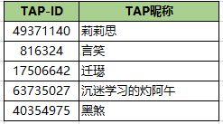 恭喜以上团长大人获得活动奖励,请团长大人加入官方Q群:836980850 联系管理员【顾念霆的兔子】回复您的【TAP账号截图】或者相关测试账号信息,【姓名】【电话】【收货地址】即可。