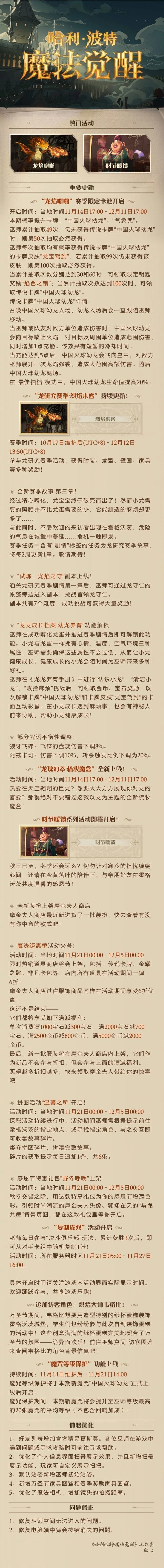《哈利波特:魔法觉醒》11月14日维护公告