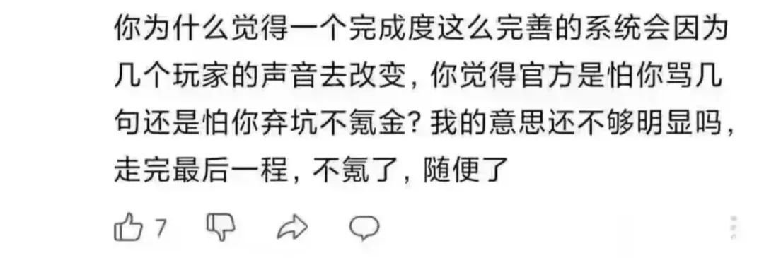 如果事情就按照这个方向继续发展的话,那么策划确实不会“因为几个玩家的声音去改变”。