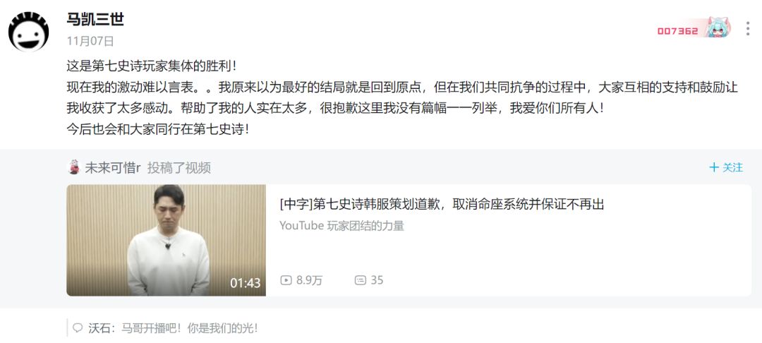 马凯三世把视频也发到了外网,并联系到了海外有影响力的主播,这封公开信作为最初的“星星之火”,开始在玩家中快速蔓延,越来越多的人开始行动起来加入抵制行动。