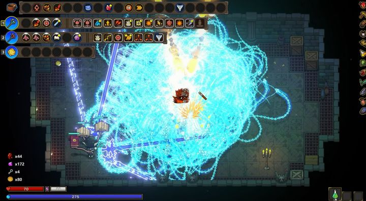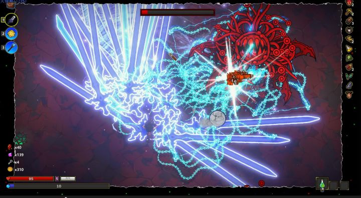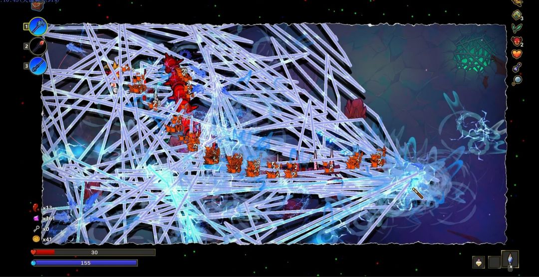 总的来说游戏是好游戏,让很多玩不来noita的玩家也能体会手搓核弹的那种爽感,不得不说这个系统上限是真高,不过缺点也有,现版本内容过少,还处于测试阶段,三个大关和一眼能看到头的法术总有些不够尽兴,整体还都有很多发挥空间。游戏steam售价为39元,为抢先体验阶段,喜欢这种内容的可以支持一下,我个人还是觉得很有潜力的
