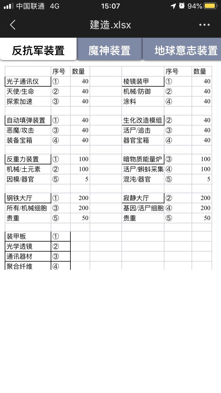 火箭里面开始建造,详见附图。 每个装置的每一阶,材料个数都是一样的,只是颜色从白至橙,同时也可以拆了重装,资源全返。 每个装置有相关buff和可兑换奖励。