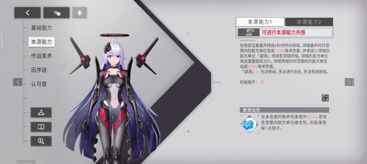第一天赋:普通攻击减速目标9%,最多叠加5层,持续5s,精二前达到上限3s后重新锁定,精二后才好用。