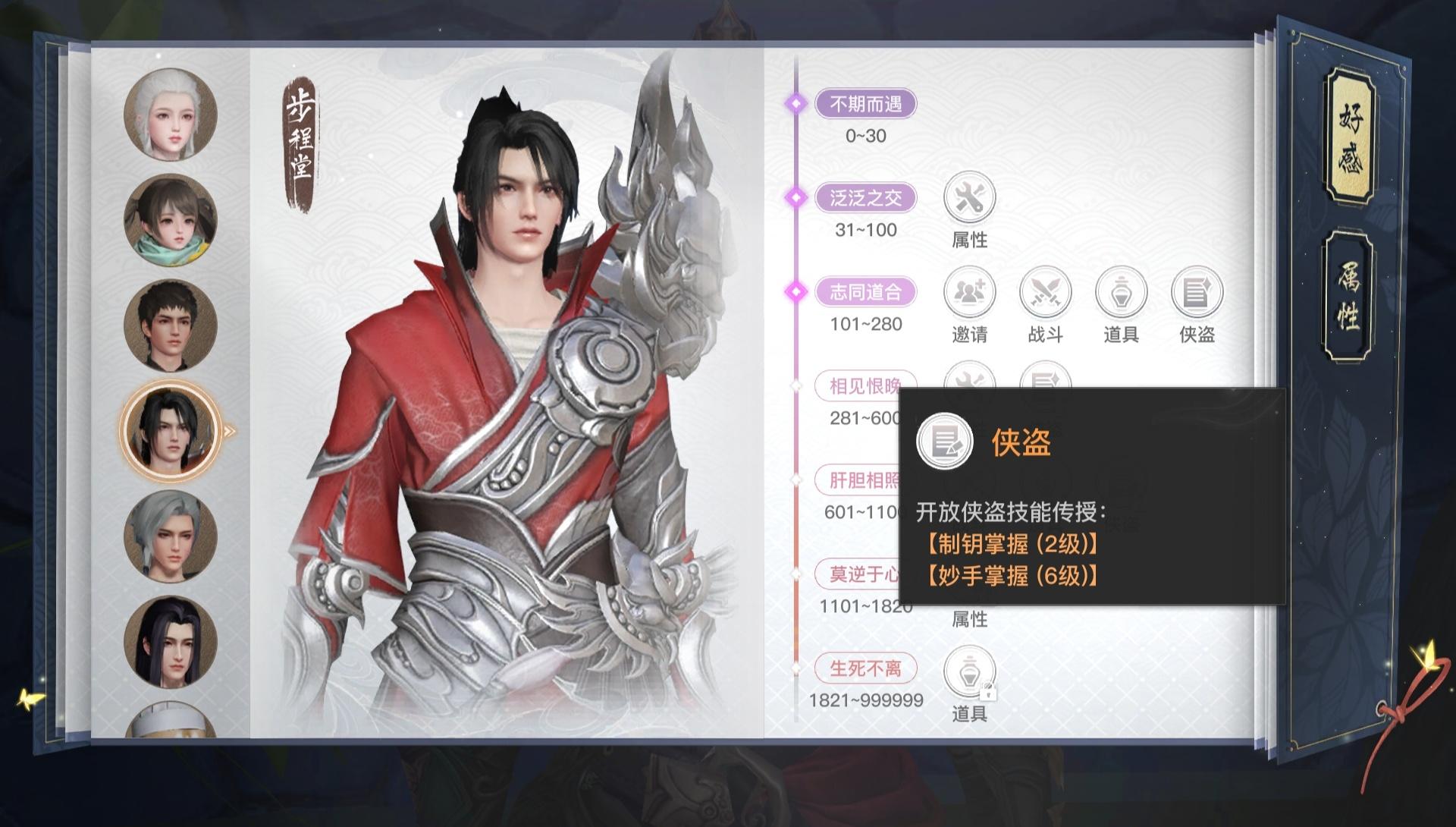 //题外话,教侠盗的那位前辈(名字里有个夜的),我还在想会不会他教新手要求的好感度不会那么高,结果找不到人了(只找到一个传送战场的分身,但是没有互动键)