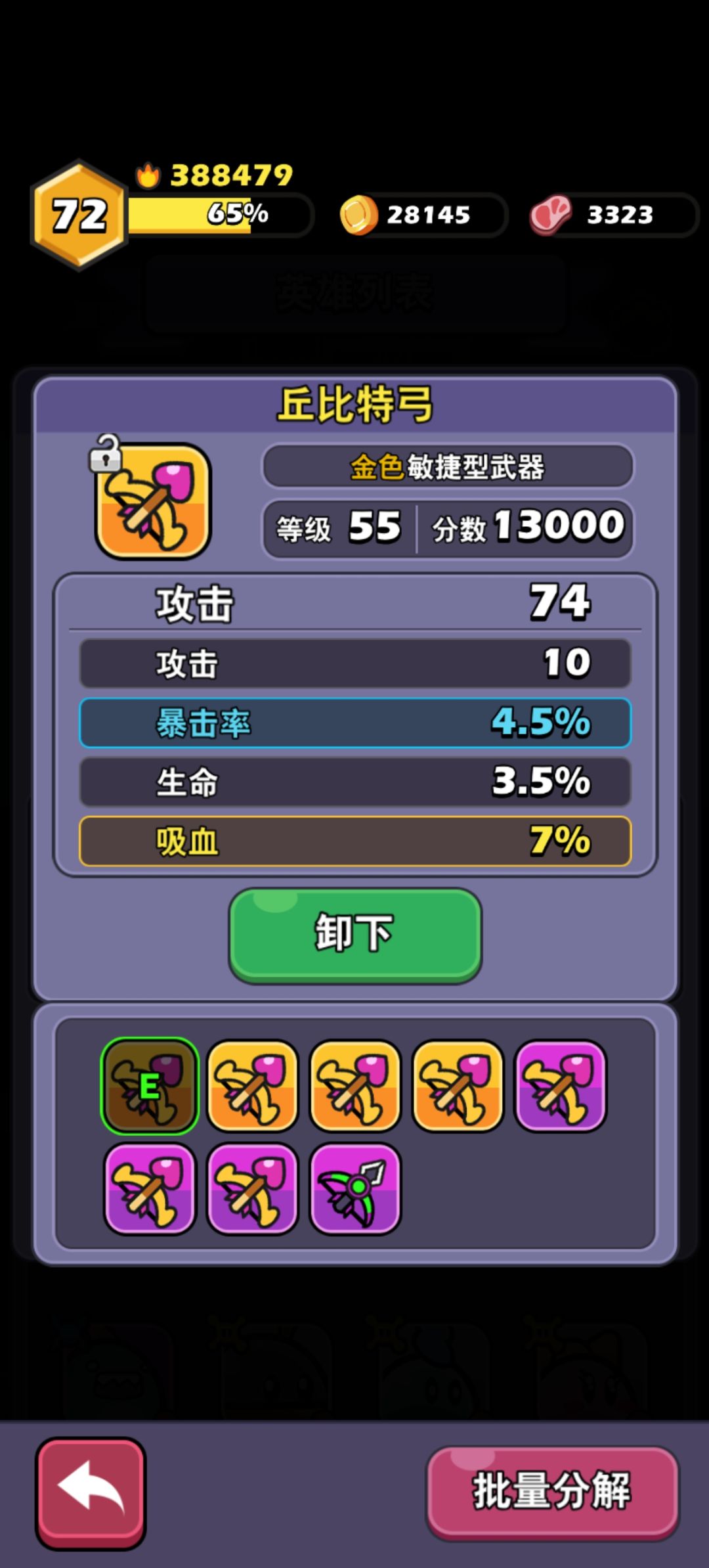 金色弓:基础属性74攻击 (暴击装)