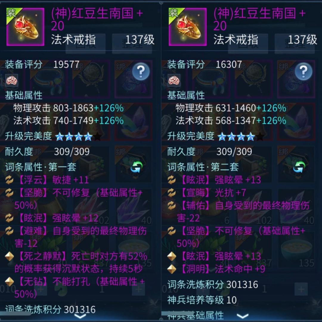 强晕+双五十、双强晕+五十,小小一枚戒指却拥有了两套令人垂涎的词条组合,菌菌都不敢想象这样的戒指搭配在装备栏里有多香!
