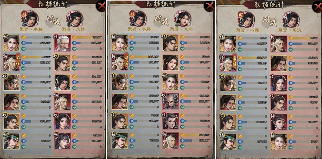 阵容和功法的合理搭配能够在一定程度上弥补战力的差距,甚至能够成功挑战高自己百万战力的对手。最后放几张笔者加入新帮派后,用此布阵挑战高百万战力以上新对手的胜利截图(胜率都在5成以上)。