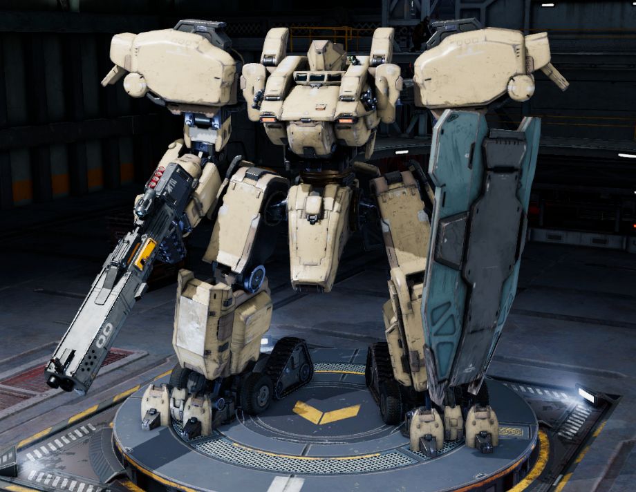 个人猜测这部分的机械装置应该是像《GTA:SA》里低底盘车的液压装置,以此来保证机兵能够通过脚部的轮组正常移动。