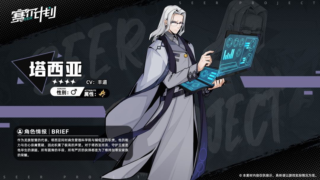 作为龙族智慧的代表,塔西亚同时肩负管理科学院与辅佐王的职责。他的能力与忠心毋庸置疑,因此积累了极高的声望。对于塔西亚而言,守护王室是他毕生的课题,所有圆滑的手段、所有严厉的抉择都是为了维持加蒂安家族的荣耀。一句话台词: 选择了追随,自然要尽忠。